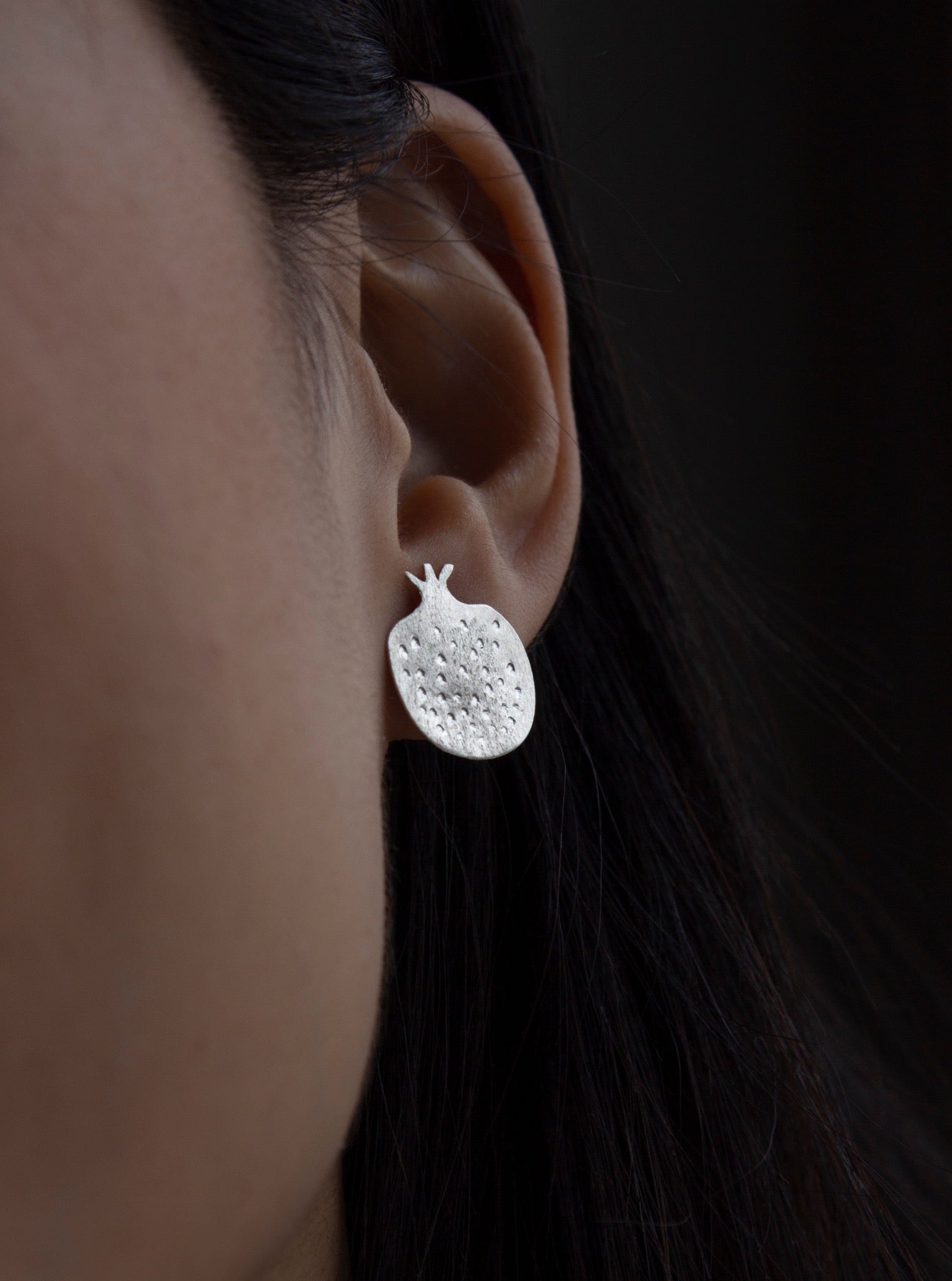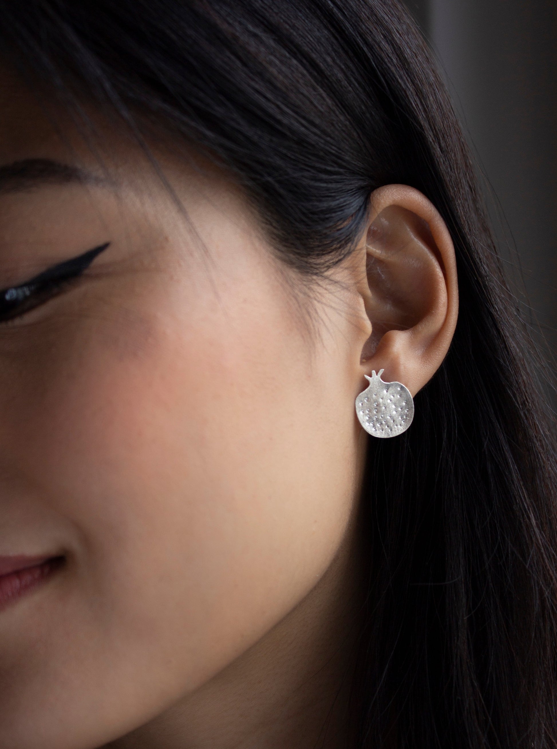 NAR earrings, captivates the embodiment of the pomegranate symbol. Derived from the Turkish word for pomegranate, these earrings beautifully represent the fruit's intricate form, symbolizing the rebirth of vegetation and the eternal renewal of life in our world. The pomegranate encompasses the majestic forces of the unconscious, embracing the fertile and solemn seeds of the Self. It is a potent symbol of fertility, abundance, good fortune, and love.
