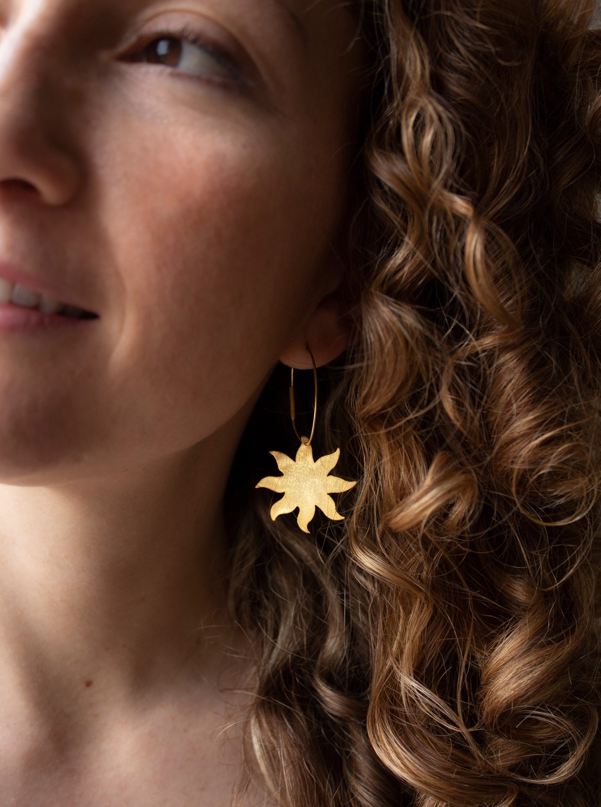 Sol is a captivating homage to the sun's enchanting presence in ancient Roman mosaics. Crafted with utmost artistry, these earrings feature a mesmerizing sun symbol nestled within a hoop, reflecting the sun's eternal brilliance. Drawing inspiration from the rich symbology of the sun, these earrings symbolize power, light, and vitality. Embark on a journey through time as you embrace the cyclical nature of life and adorn yourself with Sol, an emblem of everlasting radiance and unwavering strength.