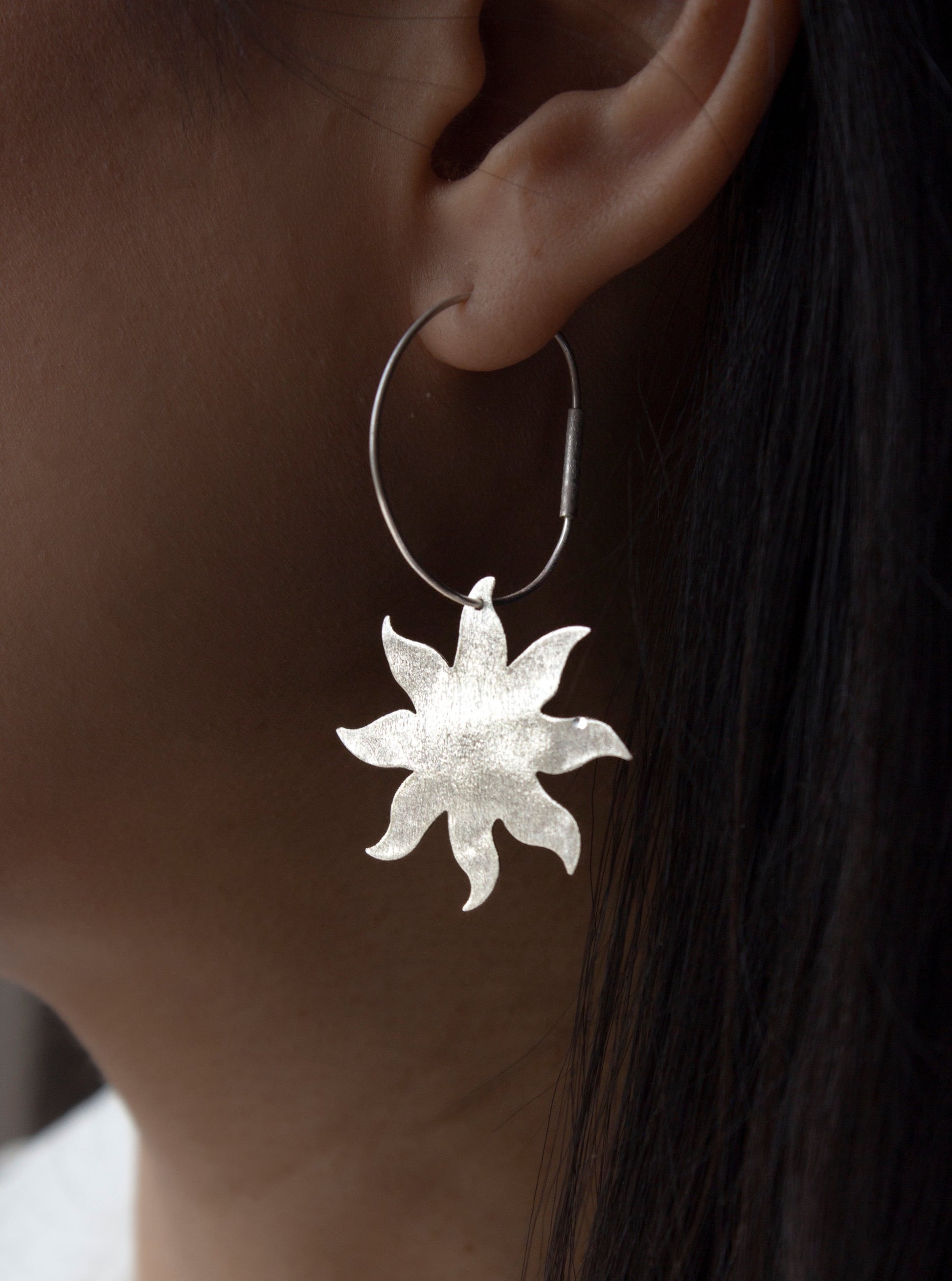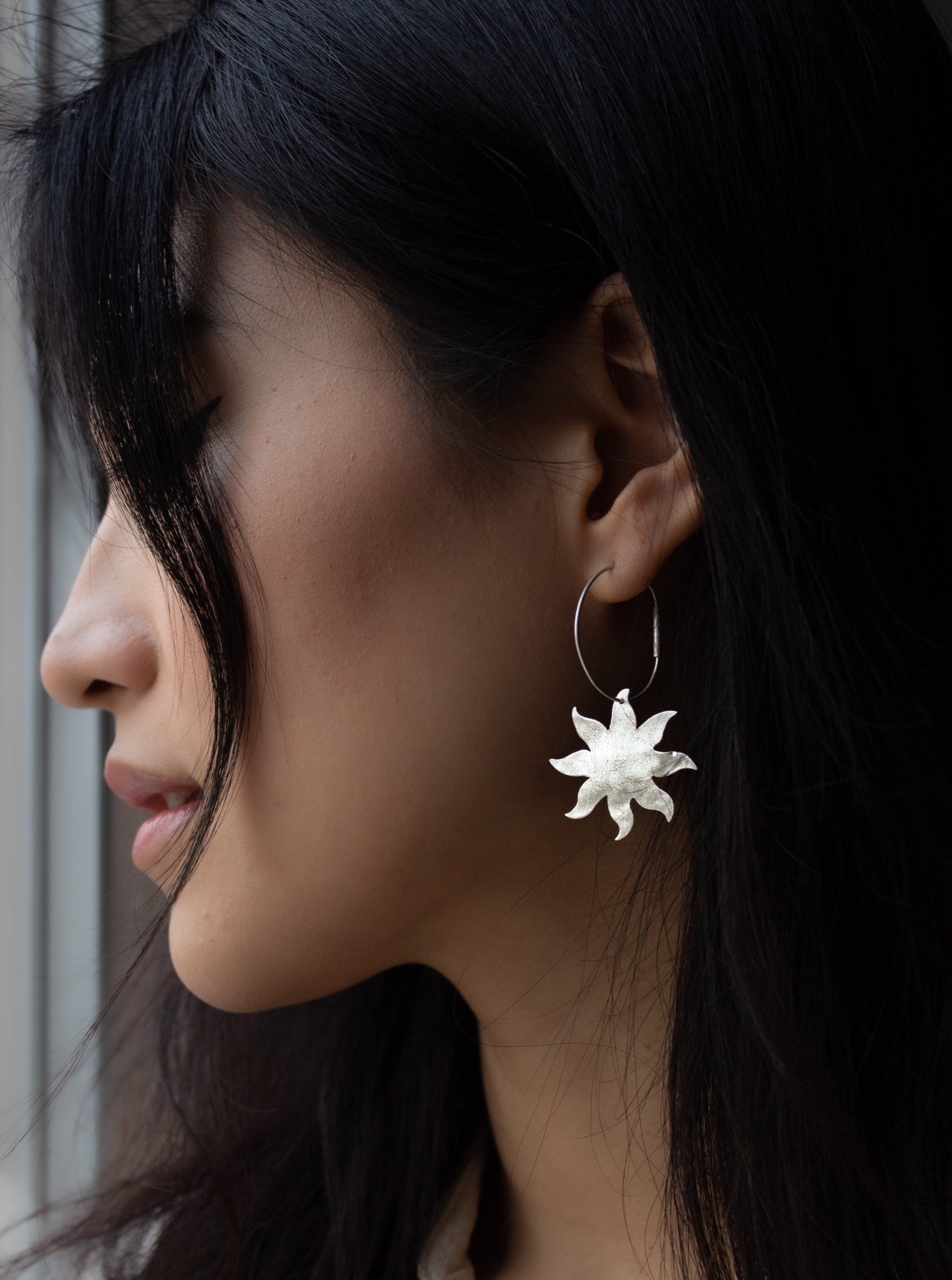 Sol is a captivating homage to the sun's enchanting presence in ancient Roman mosaics. Crafted with utmost artistry, these earrings feature a mesmerizing sun symbol nestled within a hoop, reflecting the sun's eternal brilliance. Drawing inspiration from the rich symbology of the sun, these earrings symbolize power, light, and vitality. Embark on a journey through time as you embrace the cyclical nature of life and adorn yourself with Sol, an emblem of everlasting radiance and unwavering strength.